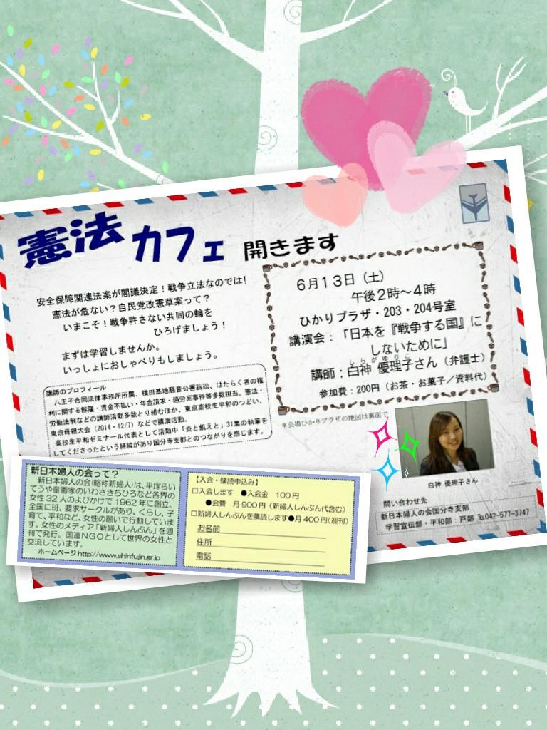 今日は新婦人国分寺支部で国分寺市内フラッシュ宣伝。