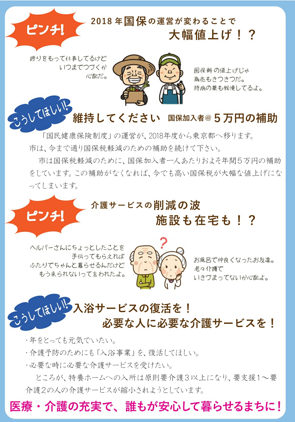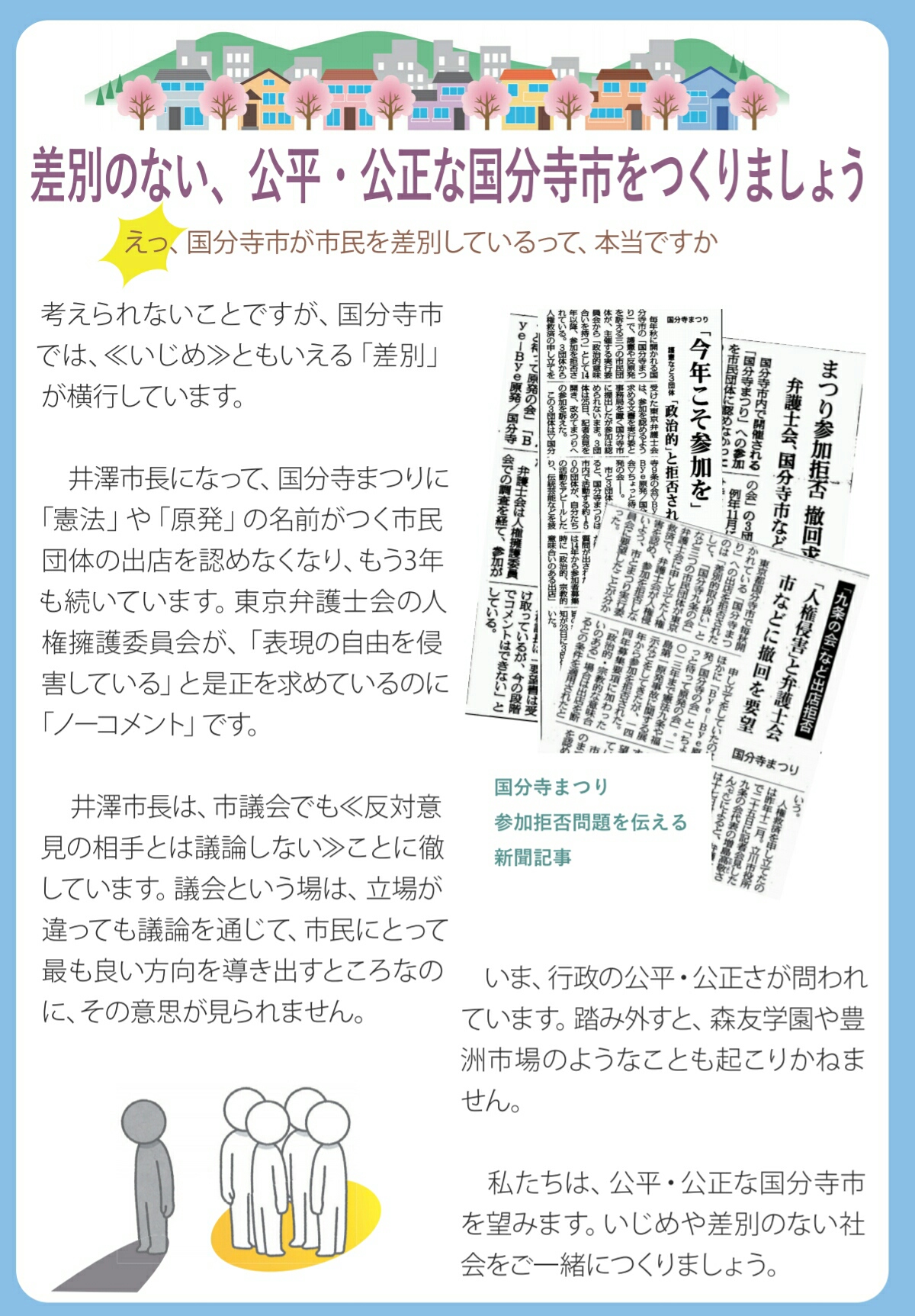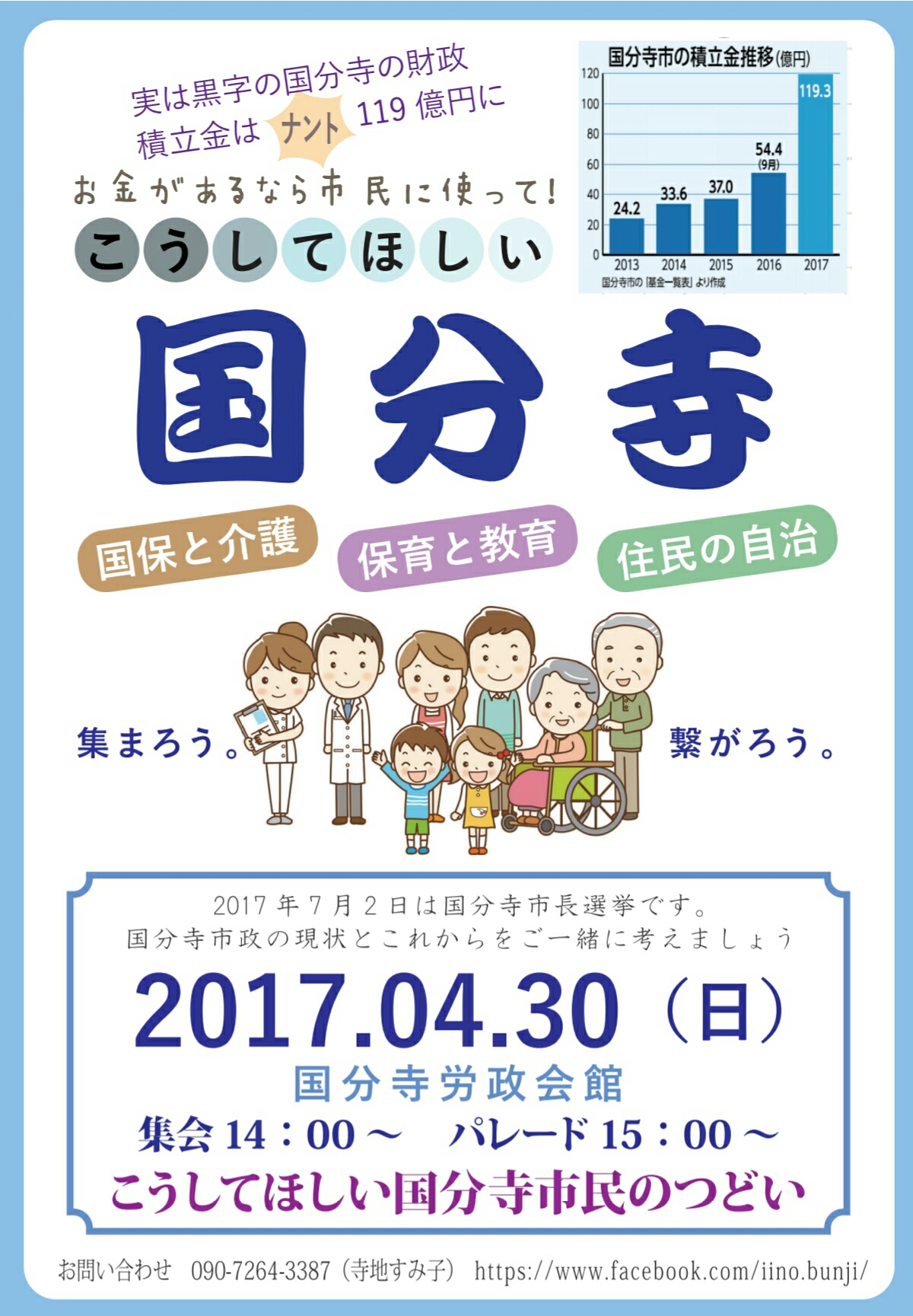 こうしてほしい 国分寺市民のつどいリーフができました 市政&地域情報 2017年04月10日 こうしてほしい国分寺市民のつどいこうしてほしい国分寺市民のつどいに、新婦人国分寺支部も参加しています。市政がこうだったらいいのになぁ。こんなことに困っています。そんな声を集めたリーフです。集会やパレードの紹介もあります。ご活用ください。 [0回]PR http://shinfujinbunji.ria10.com/Entry/111/こうしてほしい 国分寺市民のつどいリーフができました
