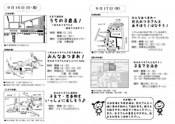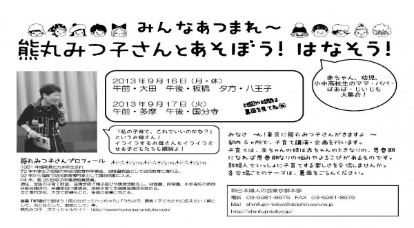 みなさ~ん!東京に、熊丸みつ子さんがきますよ!